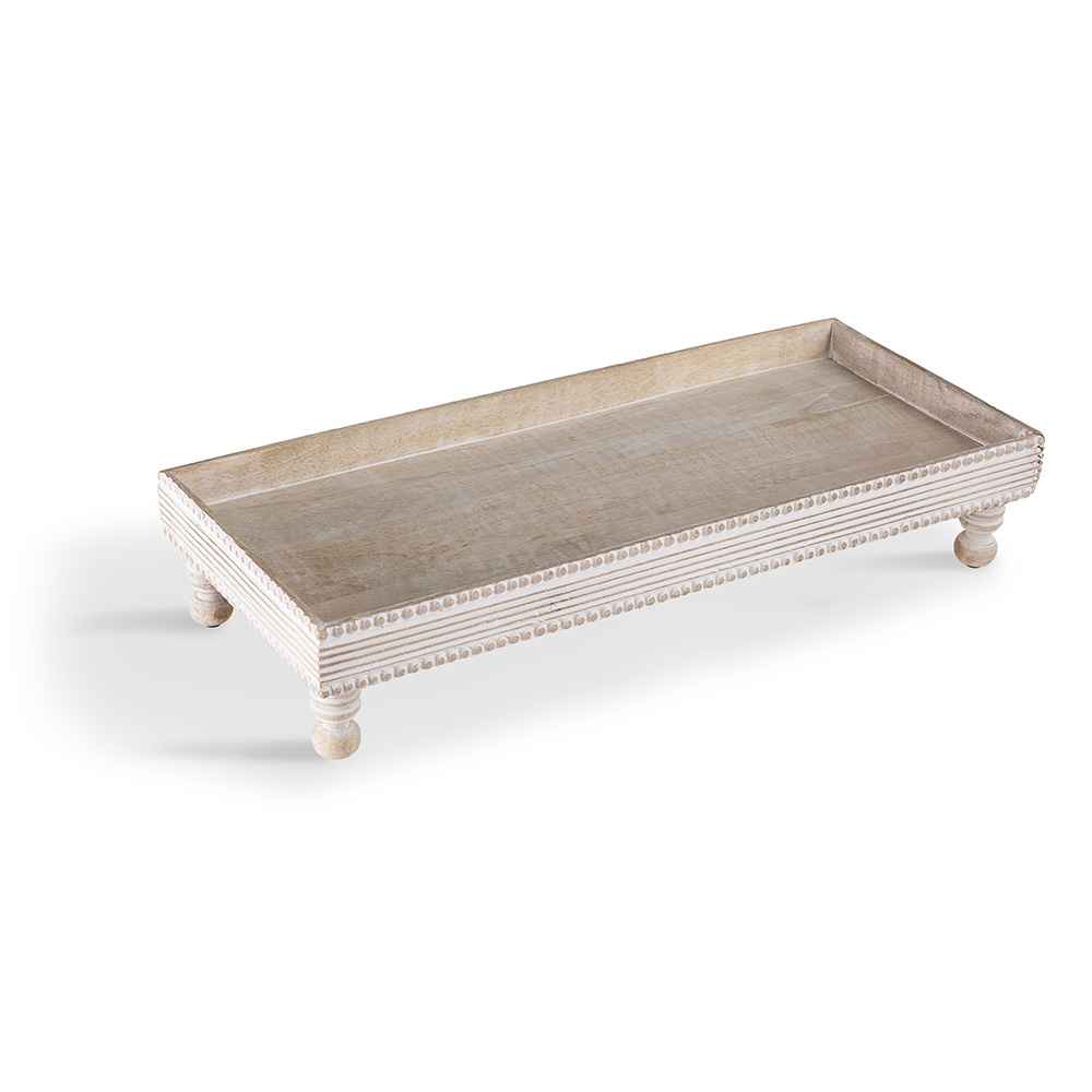 BANDEJA RETANGULAR COM PÉ PÁTINA BRANCA